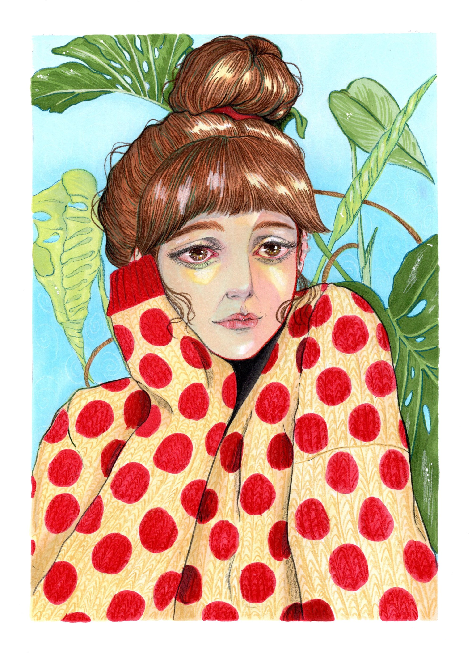 Approximately 7.75" X10.5" (19.68 cm X 26.67 cm) One off original piece. Prismacolor markers/ pencils on paper.