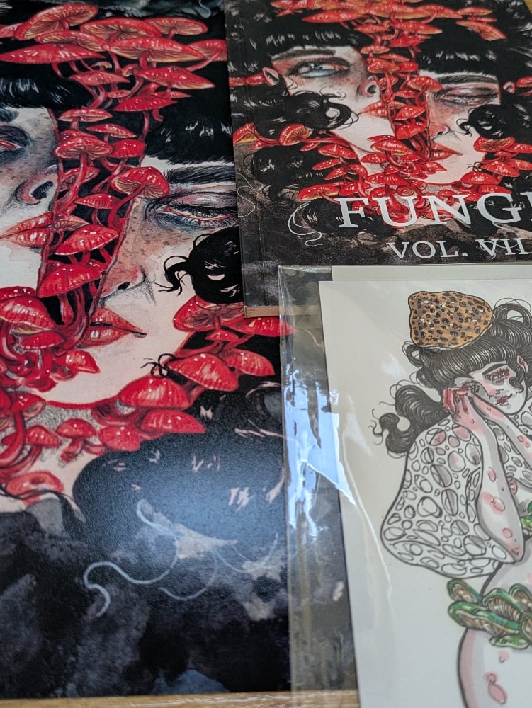 This pack also comes with one RANDOM 2.5"x3.5" signed original mushroom girl and an A4 print of the cover of Vol. 7.