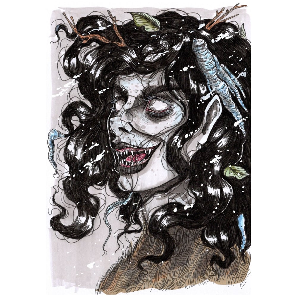 Signed 5x7" original artwork. Copic marker and colour pencils on paper.
