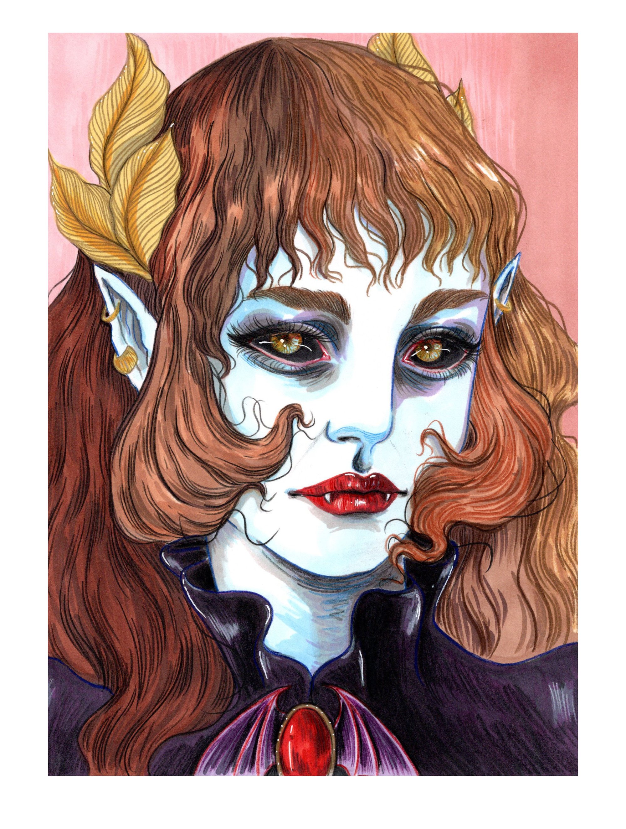 Approximately 7.44" X9.84" (18.9 cm X 25.1 cm) One off original piece. Prismacolor markers/ pencils on Bristol paper.